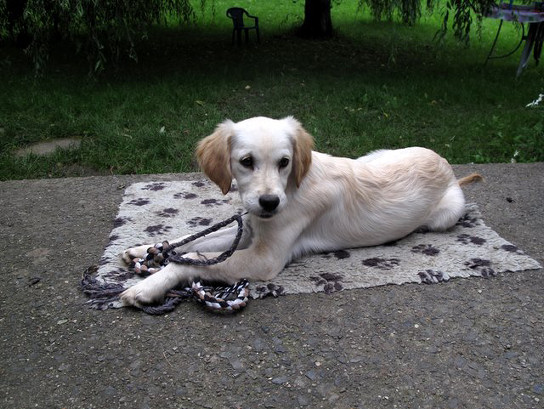 Nå er det gått to dager siden hun kom til oss, og vi har tilbragt mye tid utendørs, leker i hagen og lærer hverandre å kjenne. Det føles veldig godt, og Tanja er aktiv og glad og tillitsfull! Om noen uker begynner vi på valpekurs og det blir morro og spennende! |