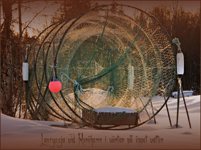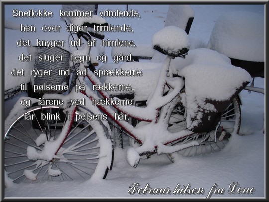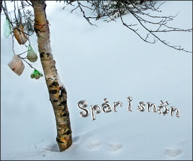 og sneen drysser ned fra lave greiner.